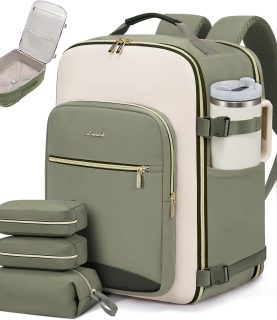 LOVEVOOK 40L Travel Backpack for Women & Men, Large Carry on Backpack for Airplanes with 3 Packing Cubes, TSA Personal Item Travel Bag fits 17″ Laptop, Waterproof Weekender Essentials Airline Approved